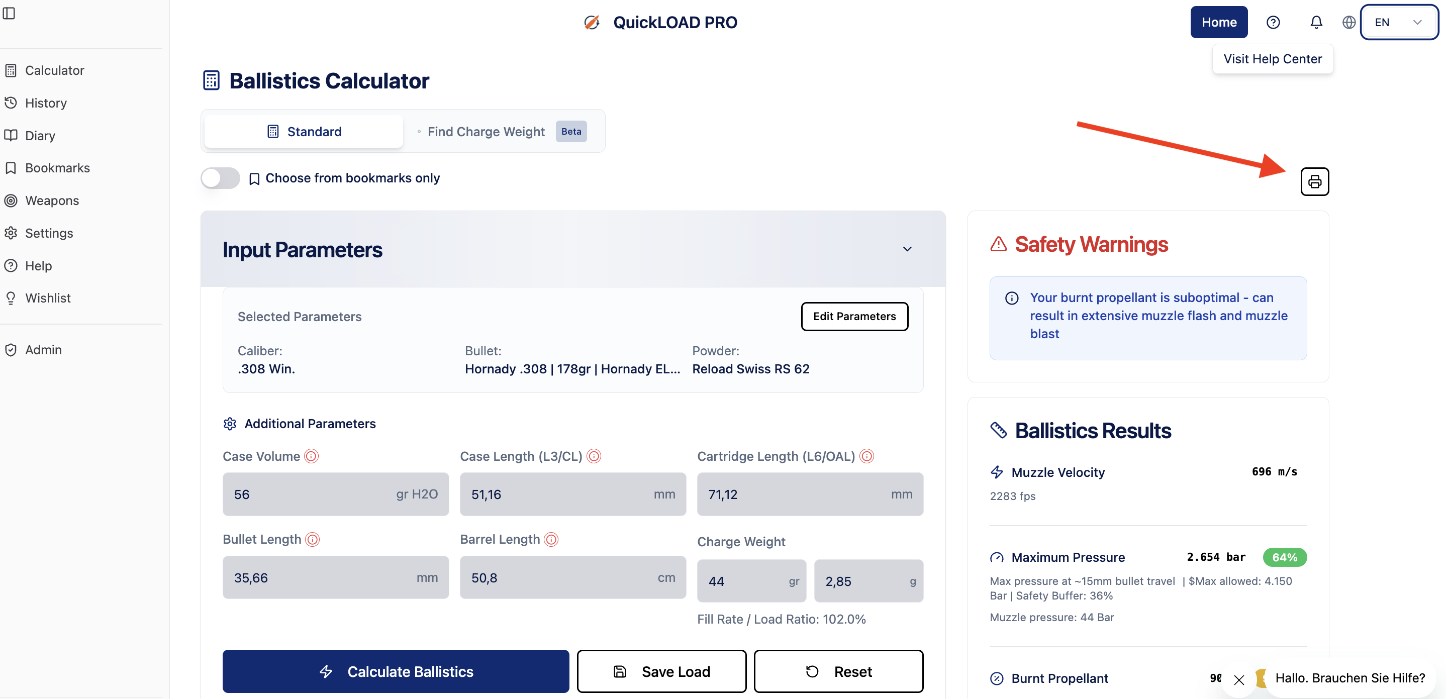 Once you have calculated a simulation result, a print icon will appear on the page. Click on this icon to generate and download a pdf file with your results: